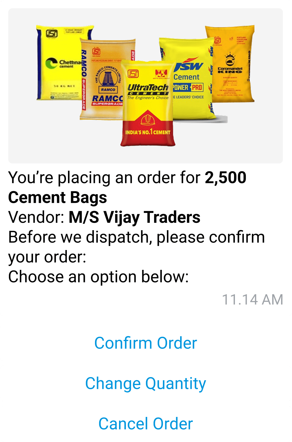 Cement bags, bricks, TMT bars, tiles, wiring, plywood, anything your vendors provide.